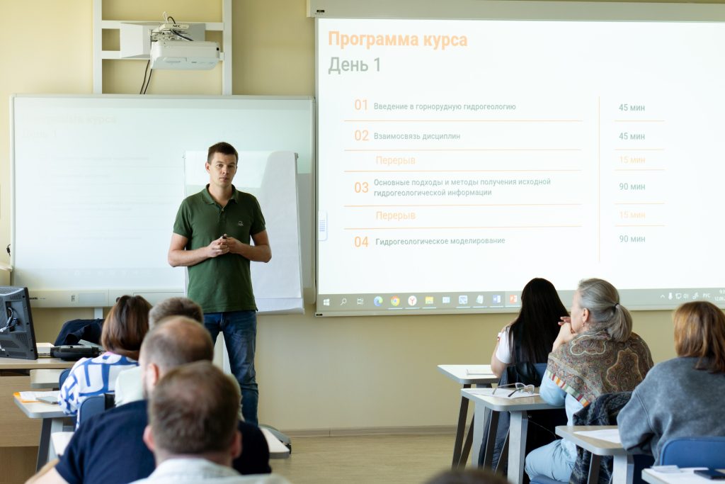 The training program included the study of basic concepts and terms of mining hydrogeology, the relationship between geomechanics and hydrogeology, basic approaches to assessing and managing hydrogeological risks, methods for reducing pressures in the sides of quarries, approaches to assessing and managing hydrogeological risks, hydrogeological modeling, as well as basic approaches and methods for obtaining initial hydrogeological information.